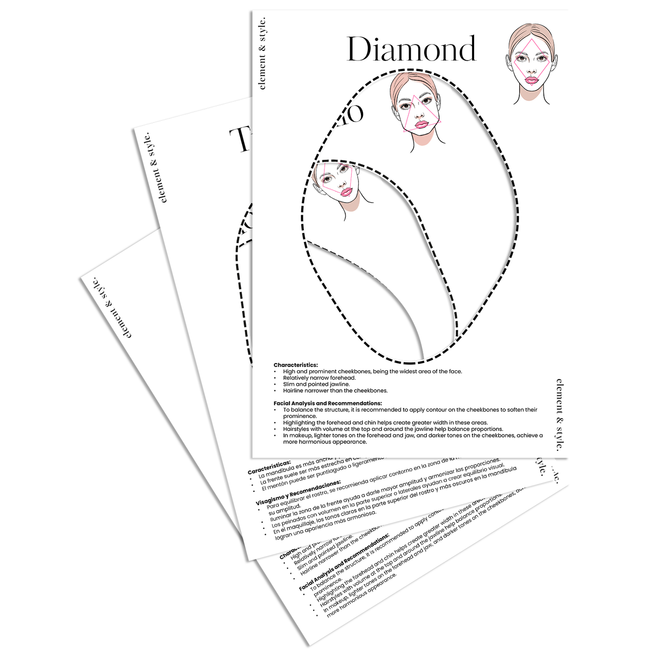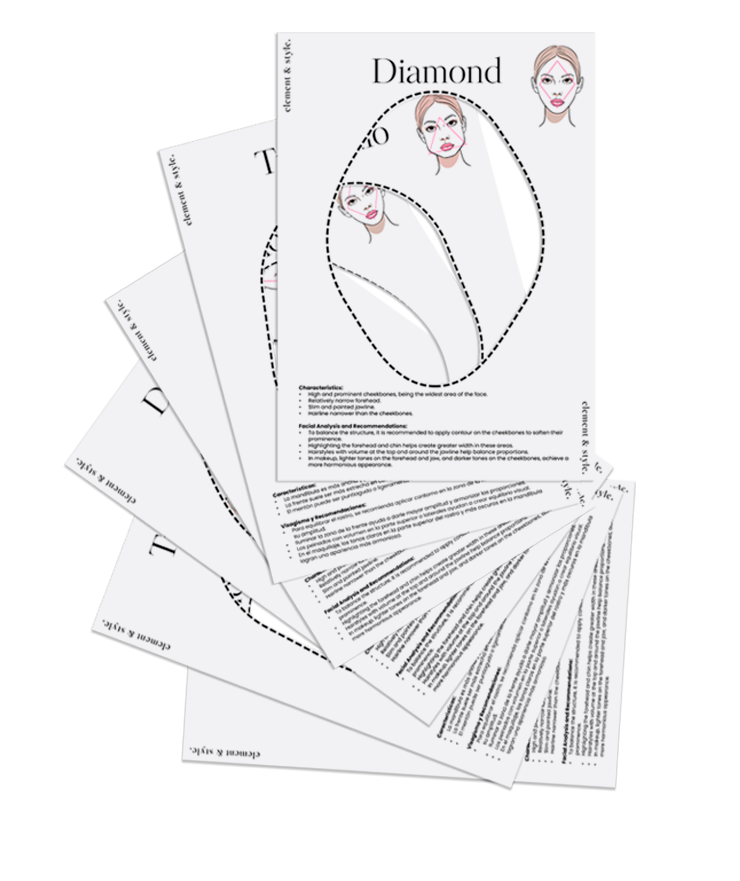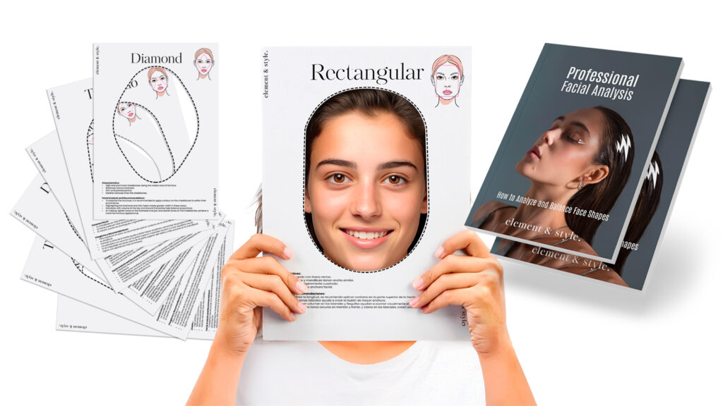 Exclusively created by Element & Style, this is the only professional guide that comes with 7 ready-to-use templates so you can demonstrate facial shapes directly to your clients—in seconds